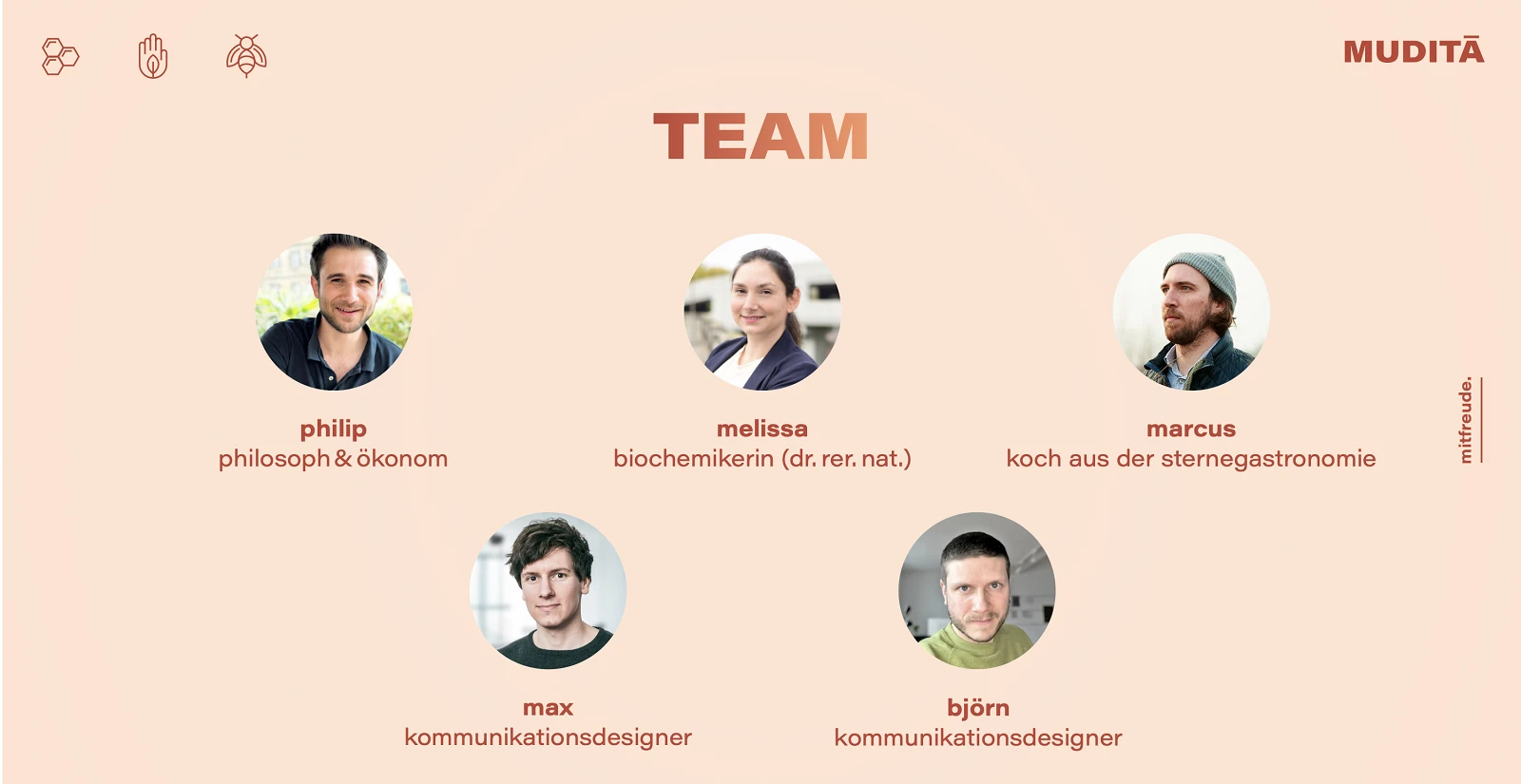 Frisch gepflückter Waldmeister, hochqualitativer Safran, intensiver Guayusa – kombiniert mit achtsam geerntetem Bio-Honig. Mit der Natur – die leckersten Limos der Welt. Wir produzieren nachhaltige Limos & Sirup im Schulterschluss mit der Natur und fördern die Artenvielfalt. Wir streben Marktführerschaft im Limo-Segment an, um Muditā zu der positiven BotschafterIn für Artenvielfalt und Mitfreude zu machen. Gemeinsam mit der Impact Factory entwickeln wir effiziente Strategien für den langfristigen Impact.